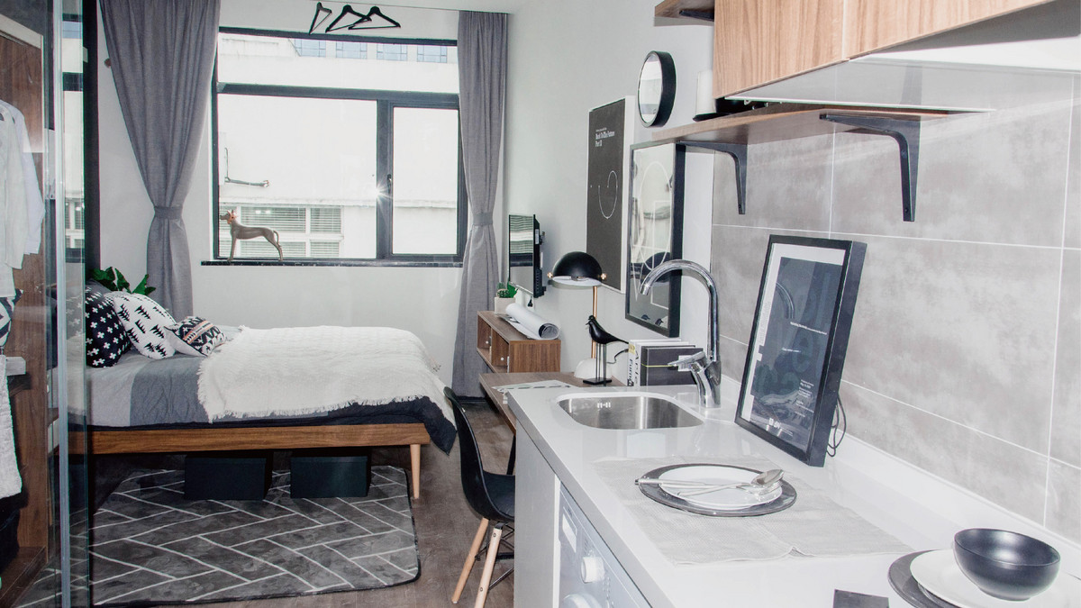 「V领地」认为, “大体量”模式的意义还在于保证“住”的品质,而这其实是用户的最本质需求。在产品设计上,「V领地」以简约时尚、空间紧凑、功能齐全 、高性价比为核心理念,为年轻人提供便捷舒适的居住空间。公寓设施配套齐全,24h监控、智能门锁家电、社区巴士、搬家服务,同时设立开放式办公位、独立工作间、T型办公室、多功能会议室等共享空间,最大程度满足用户对“住”的高品质要求。