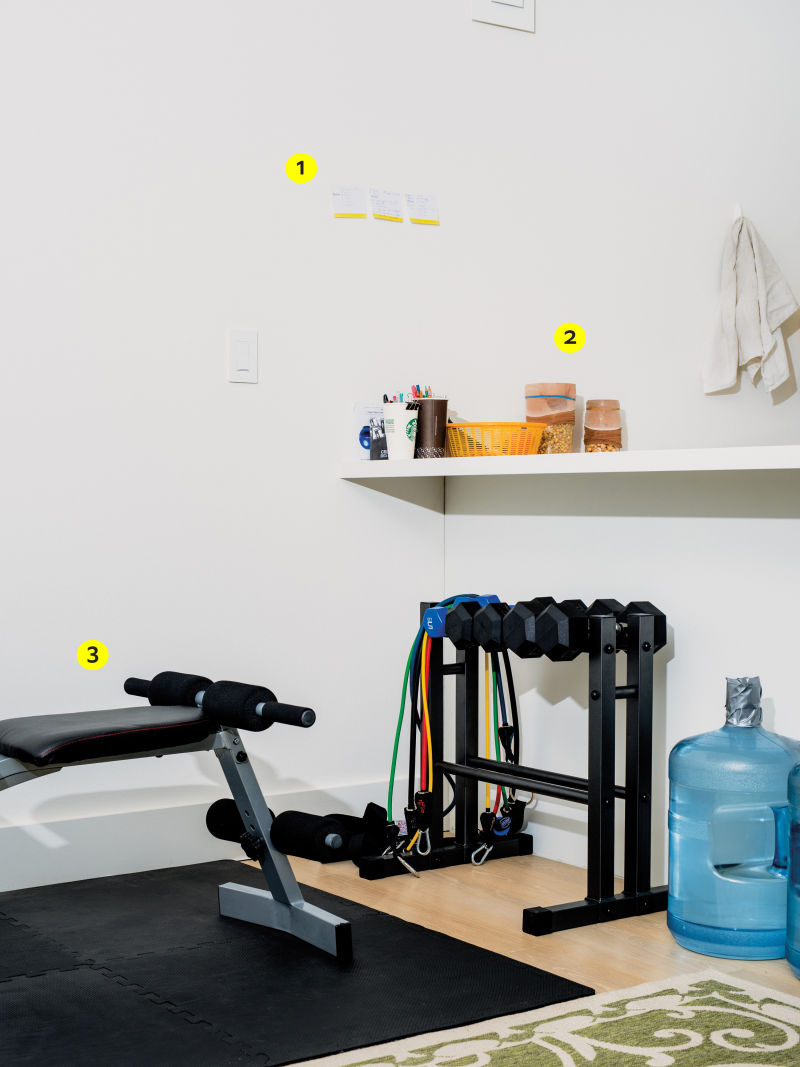 3. 为了取消每月的健身房会员资格,罗斯在家中布置了一个家庭健身站。