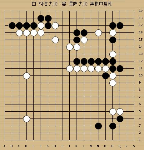 整个对弈过程如下图,似乎亮点不多,总之一句话,行至145手,柯洁认输。此时距离比赛开始还不到2个半小时。