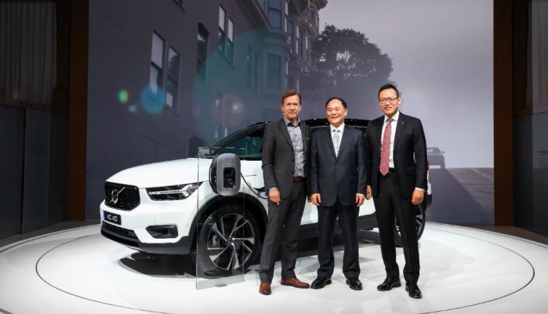 吉利控股集团董事长李书福(中)、沃尔沃汽车集团总裁兼首席执行官汉肯·塞缪尔森、沃尔沃汽车集团全球高级副总裁袁小林(右)