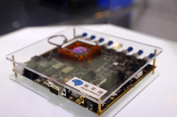 在车展上,地平线展示了一台与奥迪合作的原型车,这款车的环视系统采用了1块Matrix集成电路板。