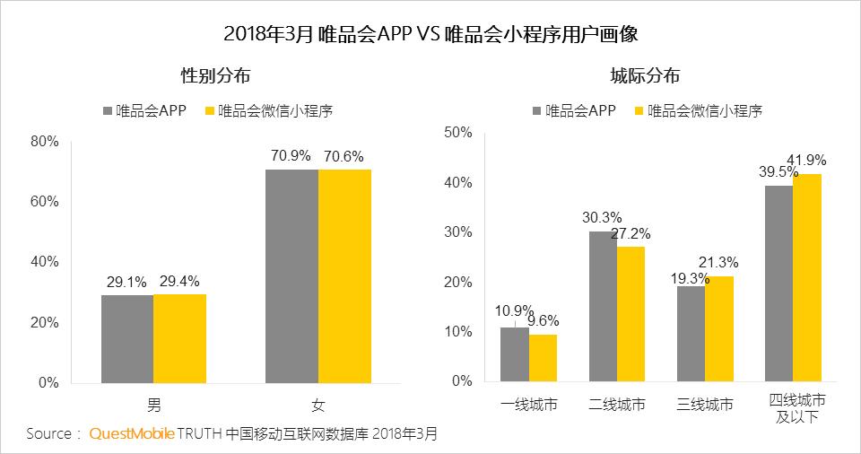 2、唯品会微信小程序帮助覆盖了更多三四线及以下城市用户