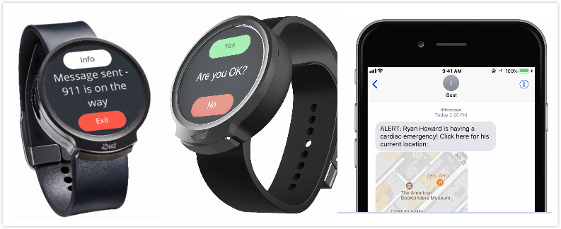 手表带有配套的 App,一旦发现危险,iBeat 将会及时提醒用户,并发送消息给他们的亲人或紧急联系人。iBeat 还记录了用户的健康信息,紧急情况时可以通过 App 发送给急救中心进行呼救,并提供用户位置,方便救护人员第一时间救助。