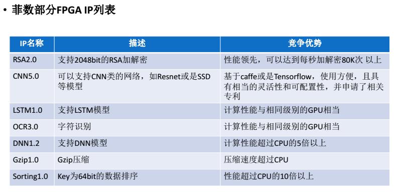 菲数科技已于2016年初供给阿里第一块FPGA加速板卡,2017年初阿里发布FPGA解决方案,同年10月菲数成为阿里云异构计算生态共建的合作伙伴之一;菲数科技目前是全球FPGA最大供应商Xilinx的官方合作伙伴,且其加速板卡已经获得浪潮认证。