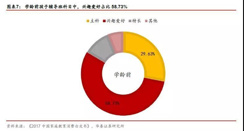 从几种消费升级产品类别的中观数据具体来看。首先,教育产品的消费。孩子的生育和培养支出是目前很多家庭面临的最大的成本开支,也是局部“消费降级”的主要原因之一。2017年11月,新浪2017中国教育盛典现场发布了《2017中国家庭教育消费白皮书》,该白皮书数据来自2017年10月份对全国范围内学生家长的51973份问卷调查,数据显示,中国家庭的教育消费意愿很强,教育支出占家庭年收入的20%以上,其中,学龄前教育支出占家庭年收入的26.39%。43.96%的受访家庭中,辅导班在教育消费中占比最大。就辅导班支出来说,学龄前孩子上过辅导班的比重最大,为89.92%,且兴趣爱好占比58.73%,充分体现消费升级。值得注意的是,白皮书数据显示,有30%的家长愿意支付超出其消费能力的学费,从这项数据可以看出目前教育支出正在挤出家庭的其他消费。