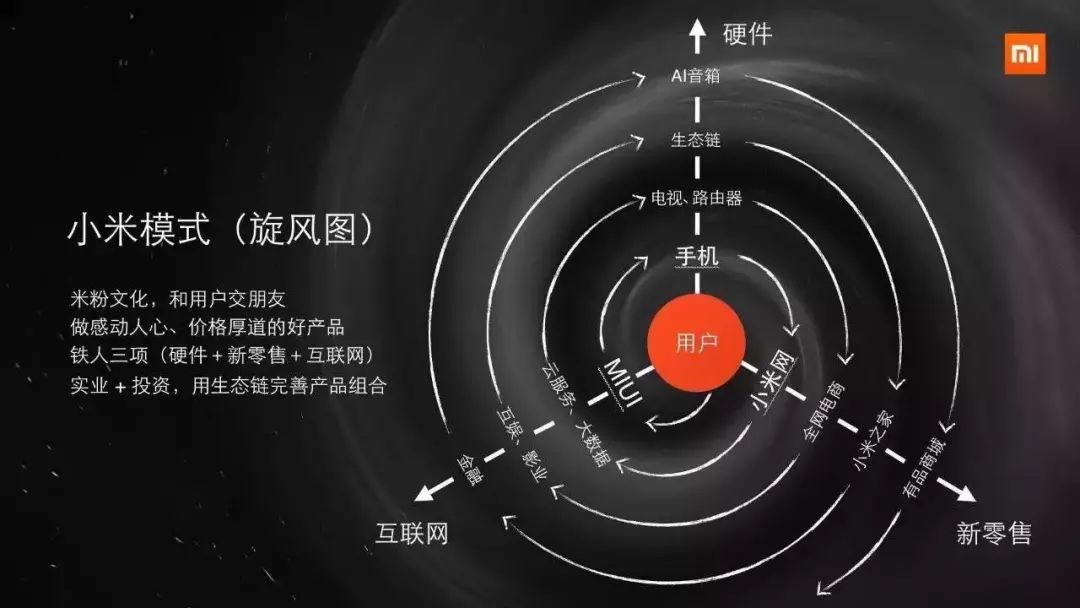 具体表述虽然有变化,在他思想的深化过程中,始终把握的关键词就是“降维打击”:发现旧模式中的问题,然后用新模式解决。注意,这里的旧模式,并不一定是传统产业。小米进入线下时,整合供应链时,借鉴了传统产业的颇多经验,雷军也曾多次提到Costco、沃尔玛、同仁堂等对他的启发。他所擅长的,是将所有模式的精髓,用互联网的方式进行再解构。