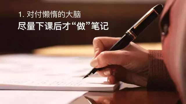 正确的记笔记方法应该是上课时只记几个要点,下课后找个时间通过回忆把笔记补全。有不明白的地方,自己查阅课本和资料把这些地方弄懂,同时对课程内容根据自己的理解进行重组。