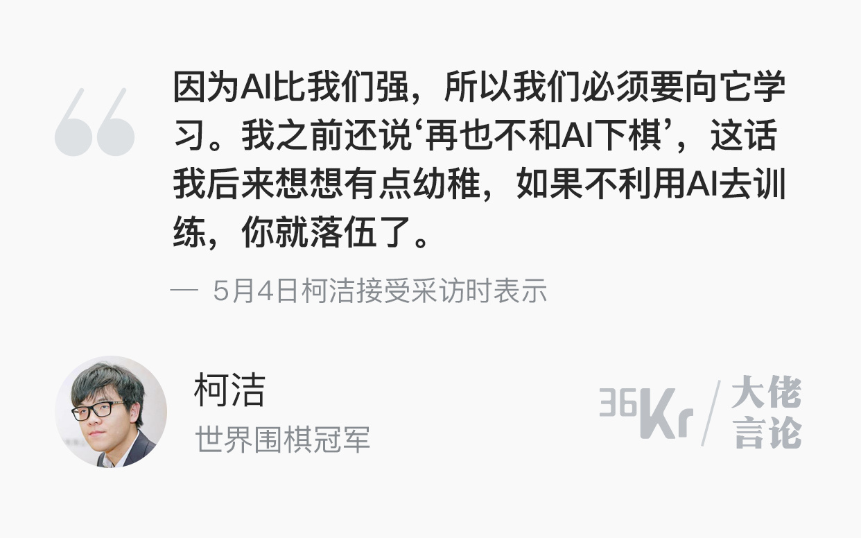大佬言论 | 柯洁:不用AI去训练就会落伍