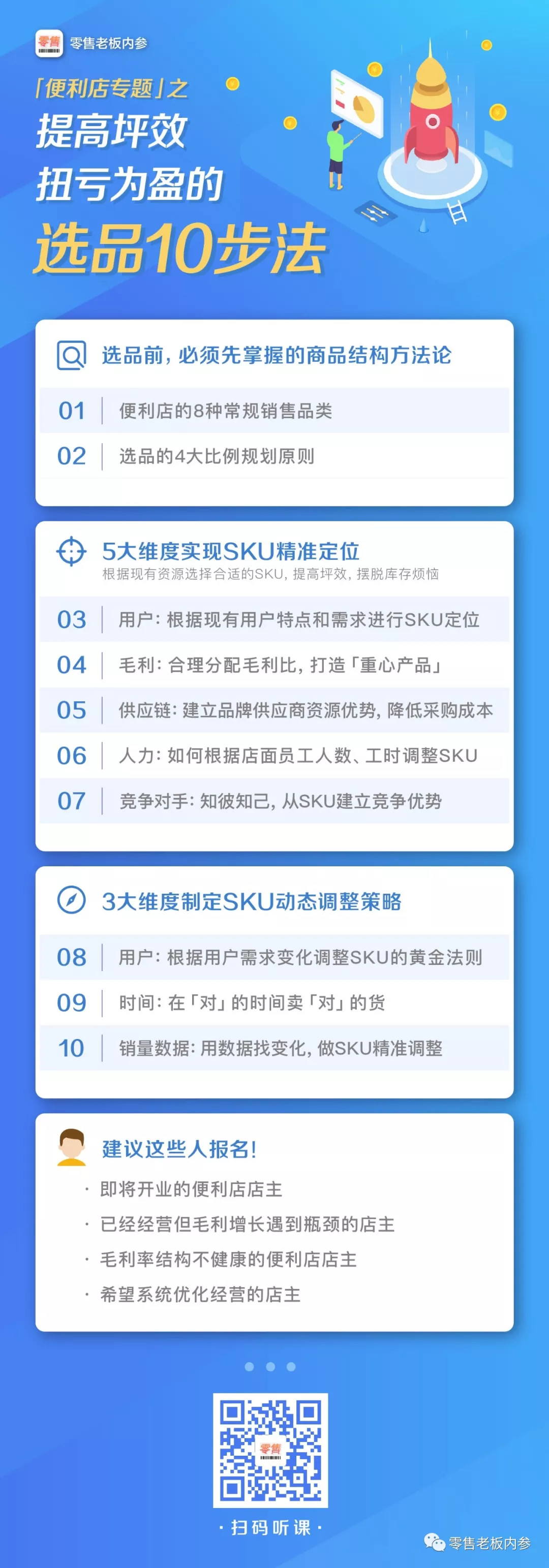 5月10日,岳洋老师将会结合从业15年选品经验,亲授便利店店主提高坪效、扭亏为盈的选品10步法。