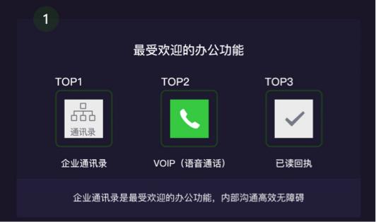 最受欢迎办公功能:企业通讯录、VOIP(语音通话)及已读回执