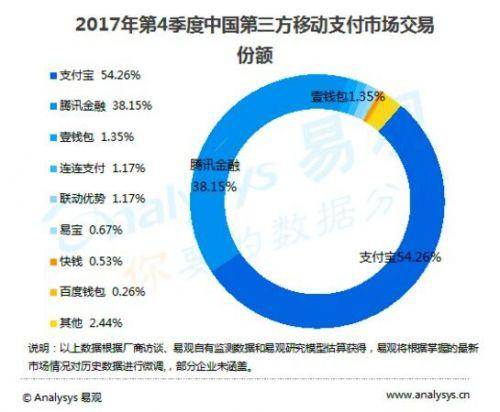 根据知名媒体人王长胜透露,微信支付爆发的那些年,依靠社交网络的病毒式传播,曾经一度将市场份额抢到了80%左右,支付宝靠着地推铁军攻城略地,再次将比分扳平,并在后续巩固了胜果。当前份额如下图易观国际的数据所示: