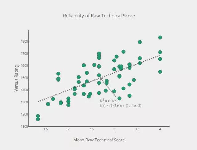 话又说回来,为什么我要提起这个?你们都是聪明人,你可以分辨,哪些人已经完成了面试题,哪些人还在假装做数学题。在做所有这些分析之前,我们想确保我们相信自己的数据。我们已经做了很多工作来构建一个可信的评级系统,与原始编码分数关联起来,来看看它们在决定实际技能上是如何强大。