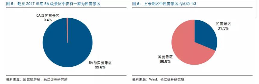 很多旅游类企业(尤其是景区类企业)都是国企,在财务规范性、业绩计算等方面有很多历史遗留问题,一时难以解决,距离上市标准有一段距离。目前知名度较高的景区主要以国营景区为主,以5A级景区为例,根据2017年3月的新闻显示 ,250家5A级景区中只有1家为民营景区。反观上市的景区企业,有31.3%为民营景区,占比相对较高。国营企业在合规改制方面困难更大。