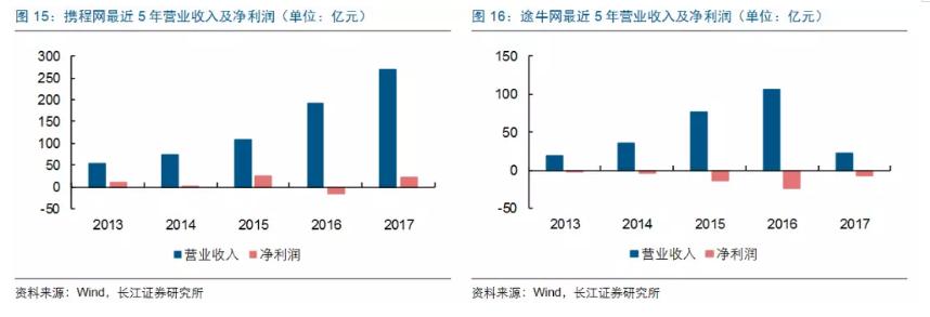 而对于新兴的旅游业相关企业来说,早期的盈利困难使得登陆A股无望,纷纷转向境外上市。典型的例子如OTA企业,由于烧钱换规模策略,几乎全行业亏损,不符合A股盈利能力的红线,无一能在A股上市。因此携程、途牛、去哪儿、艺龙等均选择在美国上市。2016年6月,同程旅游将业务分拆为线上、线下两大块,其目的在于在整体亏损下,先推动盈利板块上市。