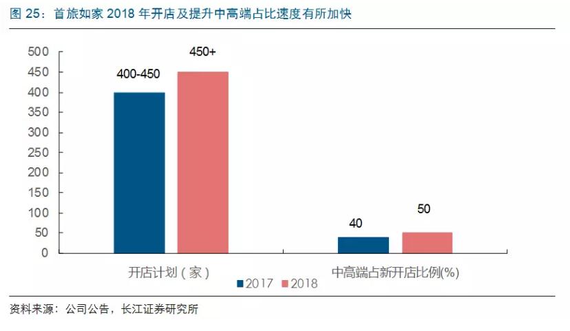 展望18年,公司主要经营战略有三:(1)计划新开不少于450家店,其中中高端酒店占新开店比重为50%以上;(2)加大现有产品升级改造力度,完成至少100家如家、莫泰经济型酒店的升级改造;(3)全力加快中高端酒店在一二线城市开业与布局。目前公司在上海、北京、山东、江浙等一二线城市酒店数量占比约一半左右,未来有望进一步提升。在三重策略扶持下,公司中高端比例有望进一步提升,盈利能力有望进一步改善。