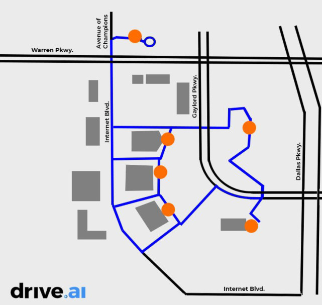 Drive.ai称,该公司将与当地交通管理部门Frisco交通管理协会(Frisco Transportation Management Association)合作,向当地零售、娱乐和办公商务区超过1万人提供无人驾驶接送服务。初期项目将运行6个月,上车地点和下车地点固定,位于HALL公园和The Star大道周边,未来将路线扩展至Frisco车站。该项目将是得克萨斯州首个向公众开放的无人驾驶车服务。
