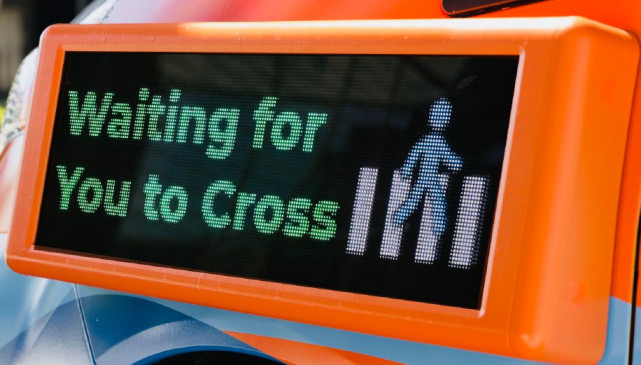 (车身上有用于与行人交流的显示屏)