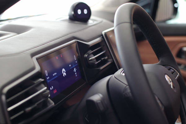 此外,在蔚来的ES8上,可圈可点的设计亮点也非常多。比如说那个可以摇头晃脑向你PO出各种表情的“Nomi Mate”,简直就是一个神形兼备的ES8代言人。