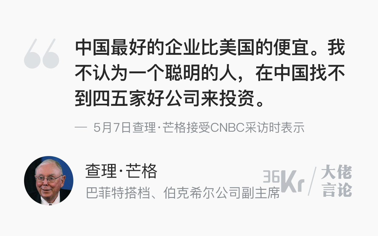 大佬言论 | 芒格:中国最好的企业比美国便宜