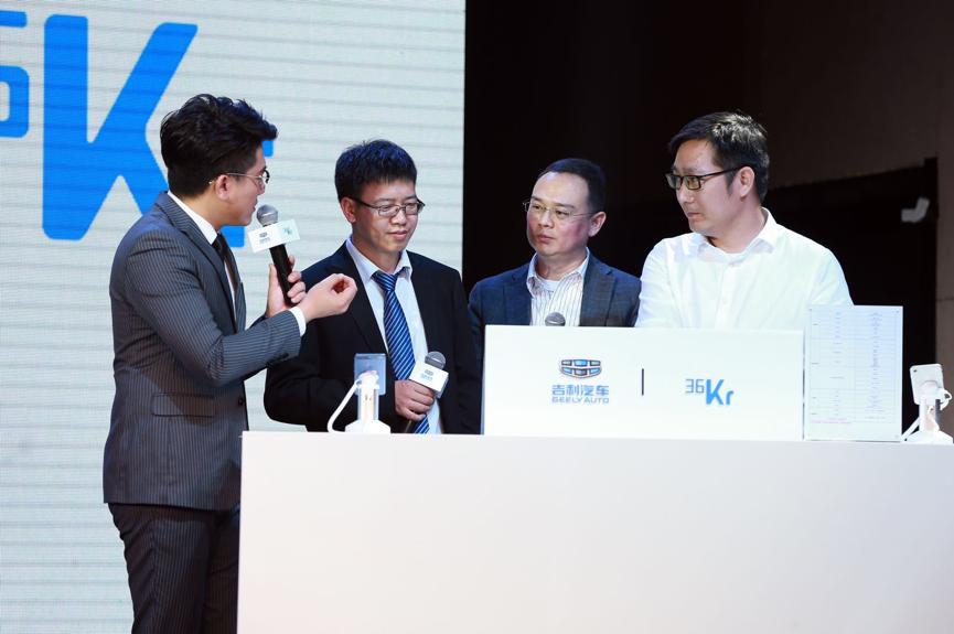 图说:在5月7日的发布会上,吉利汽车研究院蔡卫龙(左二)与中国科学院软件研究所张津诗(右一)、众调科技CEO 谢鹏(右二)进行对话