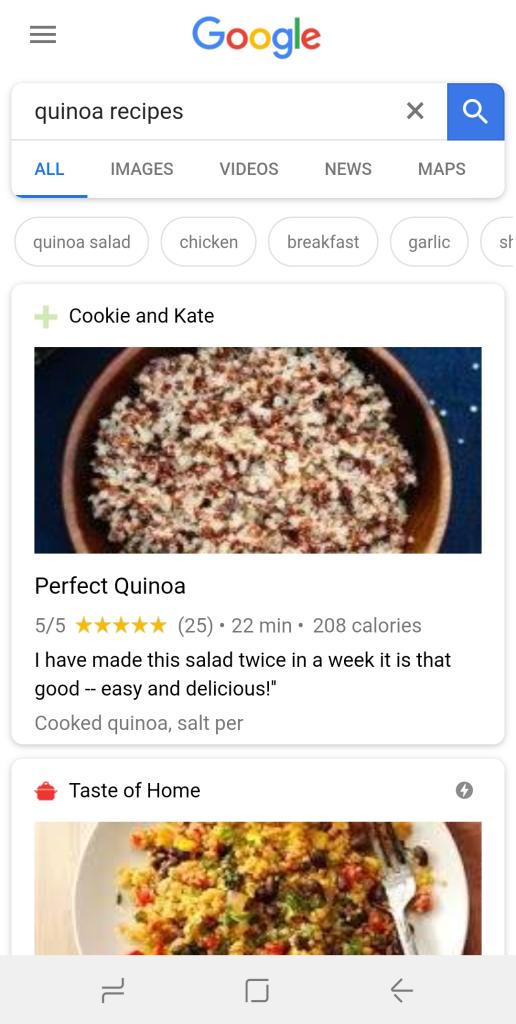 谷歌发现,用户不再愿意点击10条蓝色链接,他们没有那么多时间,也没有那么大的带宽,有许多App冒了出来,争夺查询。用户想要的是答案,希望快速获得答案。谷歌要做的就是给用户答案。如果你在谷歌搜索中提出一个问题,而且有清晰的答案,那么谷歌极可能只给你一个答案,而不是推荐提供答案的网站。我们已经见证了这一变化。如果没有答案怎么办?那就提供选择,或者提供所谓的“发现体验”。食谱可能就是好例子。以前,你可能会看到一堆网页,可能是“关于X的21个最佳食谱”,现在呢?结果就是食谱本身。