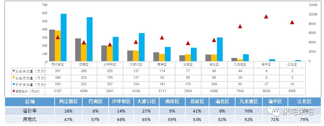 渝中区房价领先平均水平52%,两江新区房价领先平均水平25%;