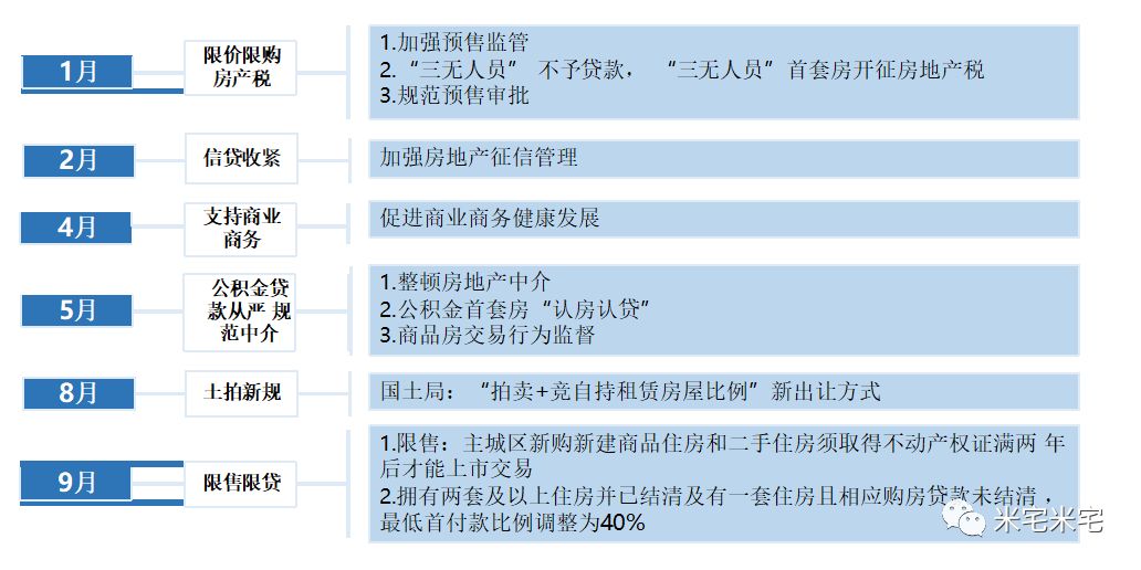2017年出台了一系列住房限售,土地及预售限价、信贷收紧、三无人员征房产税等调控政策,还有限售政策以及叠加土拍收紧、供应结构优化、市场监管严格等等力度超前。