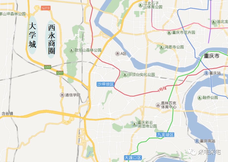 是重庆学府大区,也拥有西部地区最大的综合交通枢纽重庆西站。但是受制于嘉陵江和歌乐山山脉的阻隔,所以沙坪坝的新区是穿越了歌乐山山脉的大学城和西永商圈。