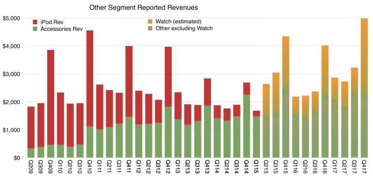 郭明錤还预测 Apple Watch 未来的销量有望达到每年 5000 万支,而在去年 11 月分析机构 Asymco 就分析 Apple Watch 很可能成为替代 iPod,成为苹果公司“其它”类别中最主要的收入来源之一。
