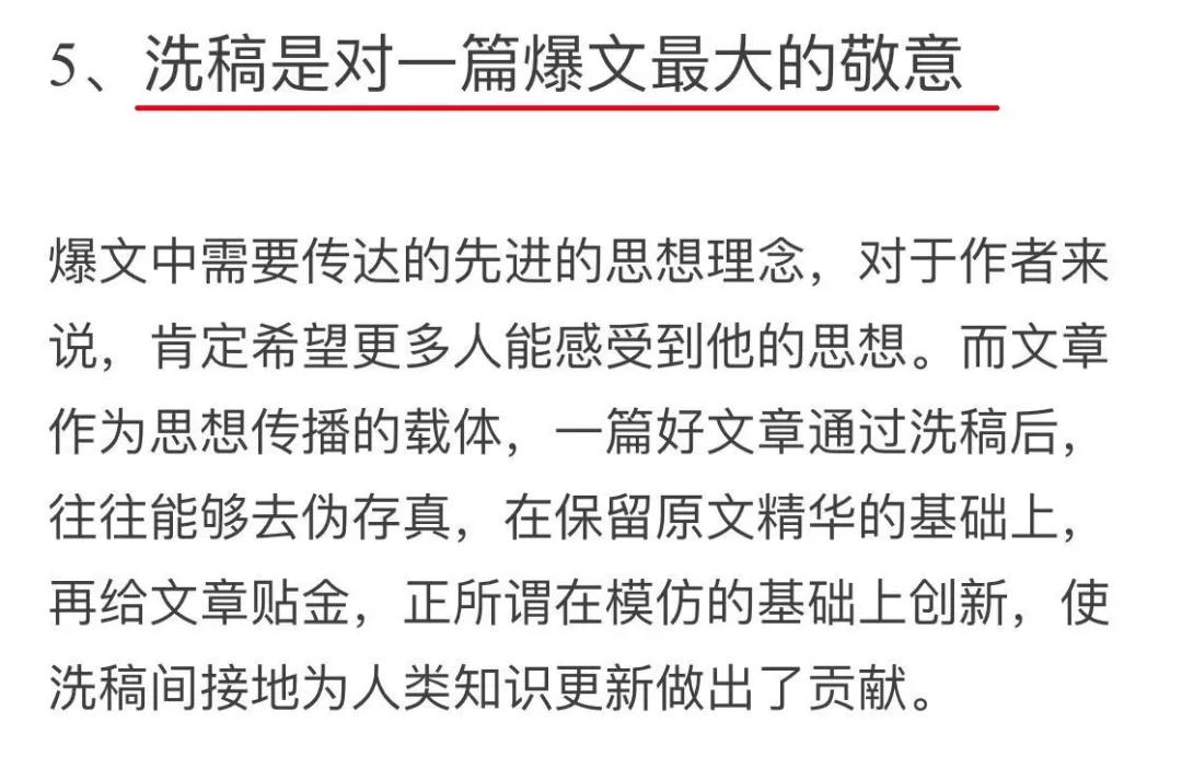 榜妹看到最夸张的一篇,是关于“洗稿是对爆文最大的敬意”的文章,说洗稿是“给文章贴金,间接为人类知识更新做出贡献”。然后文末介绍了一门打造软文、爆文的课程,价格598元。