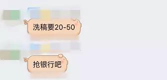 洗稿的价格是20-50元/篇。海报发在群里之后,有人吐槽说这个价格是“抢银行”。