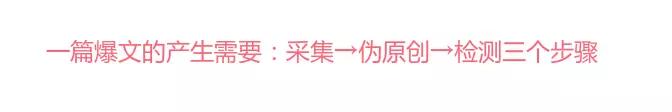 更直接的,说一篇爆文的生产流程就是:采集→伪原创→检测三个步骤。