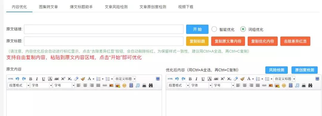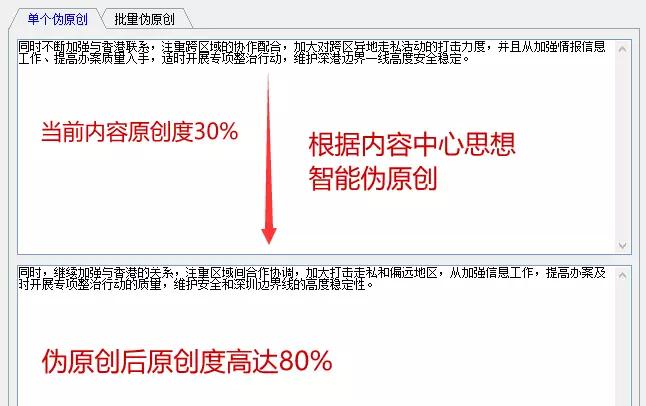 还有一种功能稍简陋的洗稿工具,复制一段文字进去,一键就能“智能伪原创”,也就是替换部分同义词和表达方式。这种工具宣称能将原创度30%的内容提升到80%。