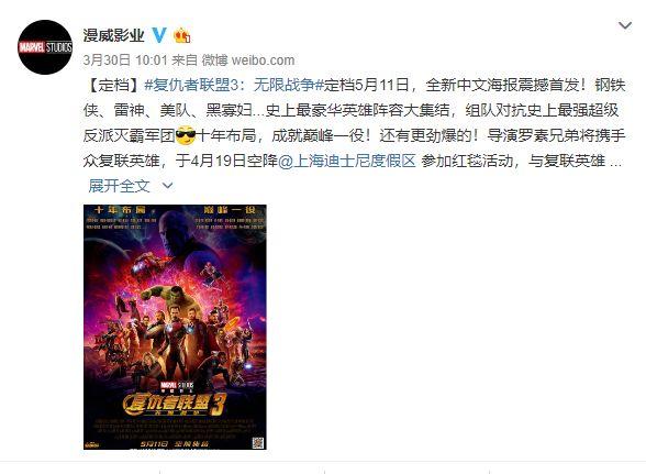 果不其然,到了3月30日,官方微博发布了《复联3》的定档海报,至此,传言变成实锤。