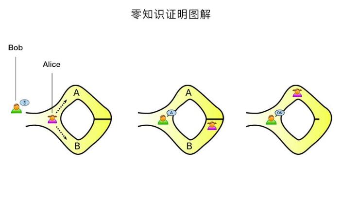零知识证明能够成立需要具备三个要素,即完整性、可靠性和零知识。举个例子来说就是,假设有一个环形走廊,出口和入口相邻但不互通(在目测距离之内),在这个环形走廊中间的某处有一道锁起来的门,只有拥有钥匙的人才可以通过;这时A要向B证明自己拥有打开这道门的钥匙,用零知识量证明来解决就是,B看着A走进入口并在出口等待,如果A从入口进入通过走廊并从出口走出,则可以证明其拥有打开中间那扇门的钥匙,而在这个过程中,他完全不用向B提供钥匙的具体信息。所以零知识证明实际上是一种概率证明而非确定性证明。