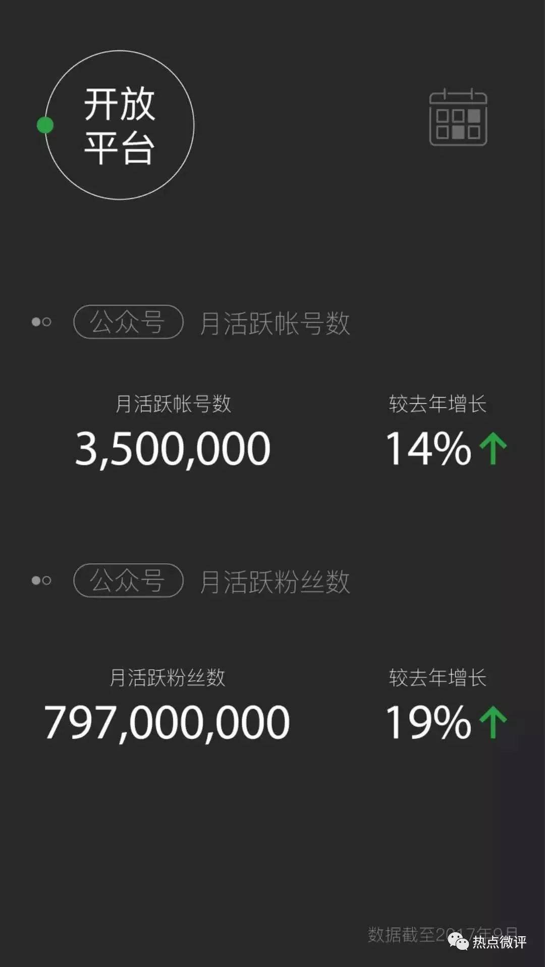 数据显示,公众号有7.9亿月活跃粉丝,但6.4亿月活跃粉丝关注了70万个公众号。而2017年微信公众号数量已超过2000万个,活跃公众号才350万个,活跃公众号占比依然偏少,微信当前做的或许是要激活这些僵尸号中具备原创生产能力的人。