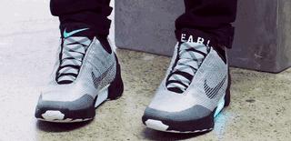 将前脚掌伸到鞋里,传送带让脚带到正确位置,固定好,HyperAdapt 自动调节鞋面松紧,两个维度都到达最合适的状态。