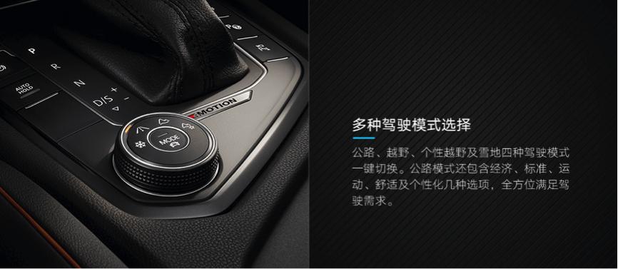 众所周知,驾驶是分场景的,在城市道路、高速公路、以及越野时所需要的操作以及对车辆的要求并不一样,从而也就出现了不同的车型。但人们通常面临的一种情况是,驾驶的场景经常有切换,比如今天在城市里上班,假日就去越野了,在这种场景的变化下,就有了新的车型——SUV,平衡了不同场景下驾驶的体验。但是在取得平衡时,必然不能够面面俱到,在越野性能上,比不上纯正的越野车;在能耗上,又高于普通的汽车。怎么去进一步优化各个场景中的不同体验,成了SUV汽车的最大的难点。大众进口汽车Tiguan作为一款SUV,应对不同的驾驶场景,其提供了多种驾驶模式可供选择。比如,用户能够在公路、越野、个性越野以及雪地四种驾驶模式一键切换,在不同的模式下,汽车的底盘、驱动系统等等都会有所有所调整,以最大化地匹配驾驶场景,将车辆在各个维度上的性能发挥到极致。