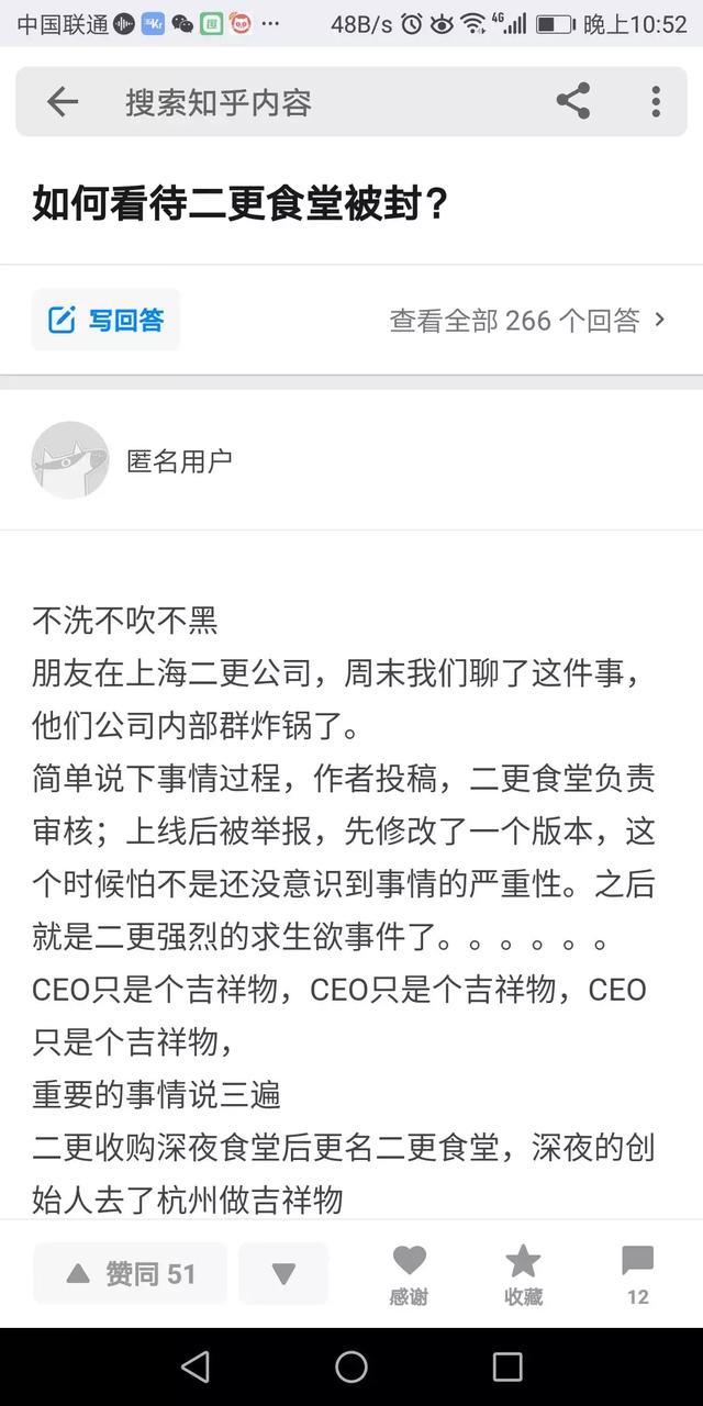 他表示,通过公司内部的调查,以及二更食堂运营团队的检查和反省,发现此次事件深层次的原因,在于二更食堂运营团队在价值观导向上出现了偏差,内容审核机制存在漏洞,运营负责人缺乏应有的管理意识,把关不严,才造成如此严重的后果。