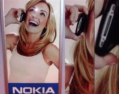 2011 年的诺基亚,本身就已经在智能机市场备受压力了,结果还因为不省心的猪队友,花钱平白给自己最大对手苹果免费打了广告。在澳大利亚地区投放的宣传画板上,满面笑容打着电话的女子,手里拿着的却是 iPhone4 。