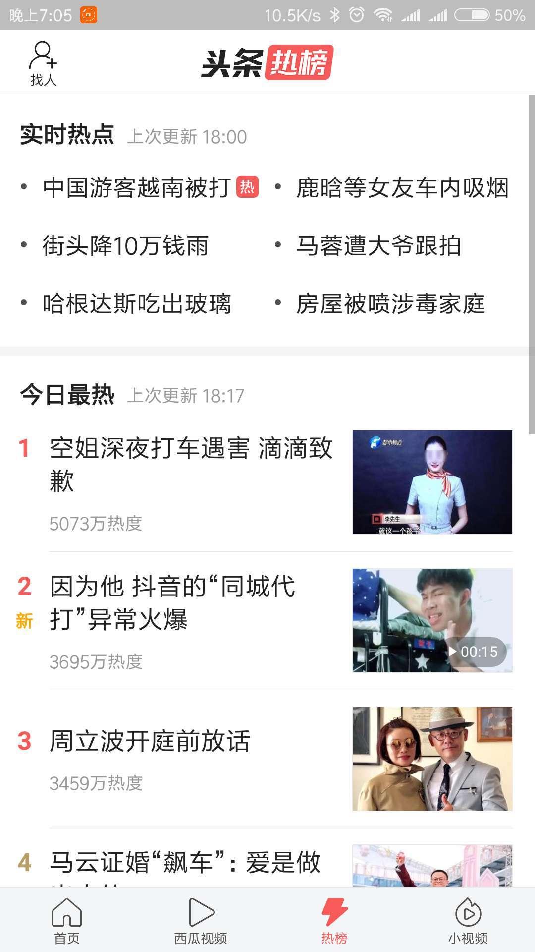 5月10日,创业家爆料今日头条内测版App中,增加了一个名为“头条热榜”的页面,同时,App底部菜单栏的微头条也由热榜代替。具体来看,头条热榜分为两部分,一部分为实时热点,另一部分为今日最热。无论从名称还是功能来看,“头条热榜”都与微博的“热搜”十分相似。