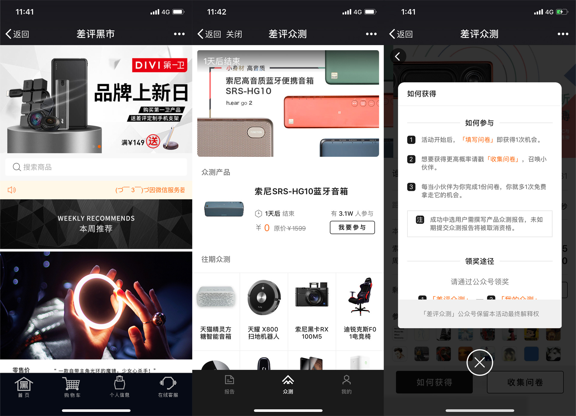 去年年底开始,「差评」从众测栏目切入,通过填写问卷,赢取产品抽奖机会的形式,在朋友圈形成裂变传播,每场众测平均参与人次近4万。众测也成为了品牌方寻求合作的方式之一,通过用户问卷,品牌方和「差评」都可以得到更清晰的用户画像。众测已然是「差评」连接与沉淀用户的重要载体。