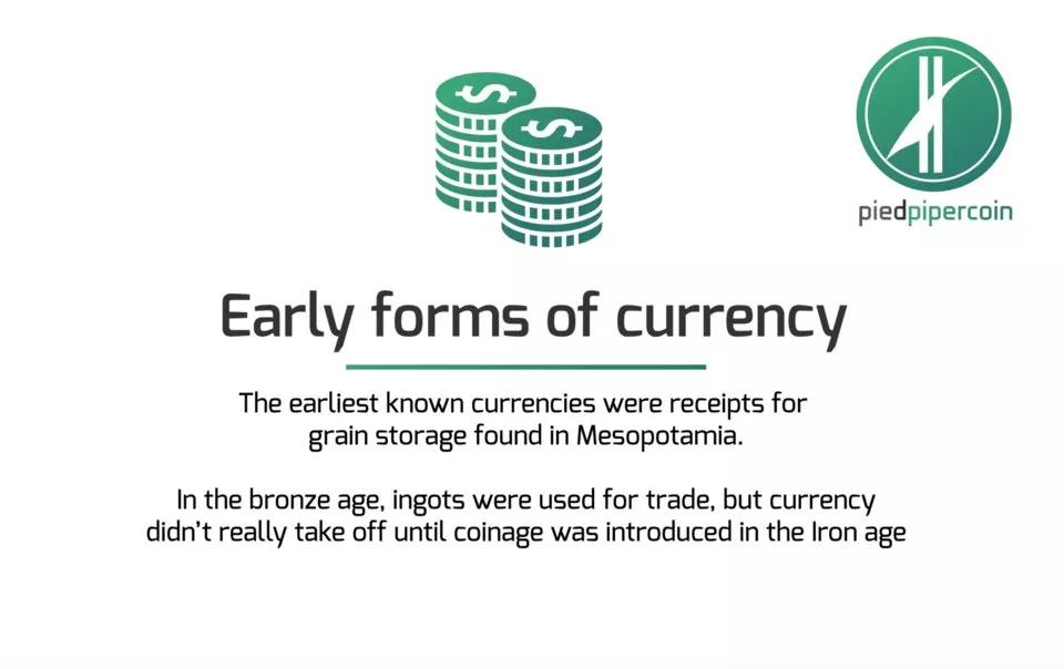 早期货币形态:已知最早的货币是美索不达米亚的粮食存储票据。直到铁器时代,金属货币的诞生才真正推动货币的普及