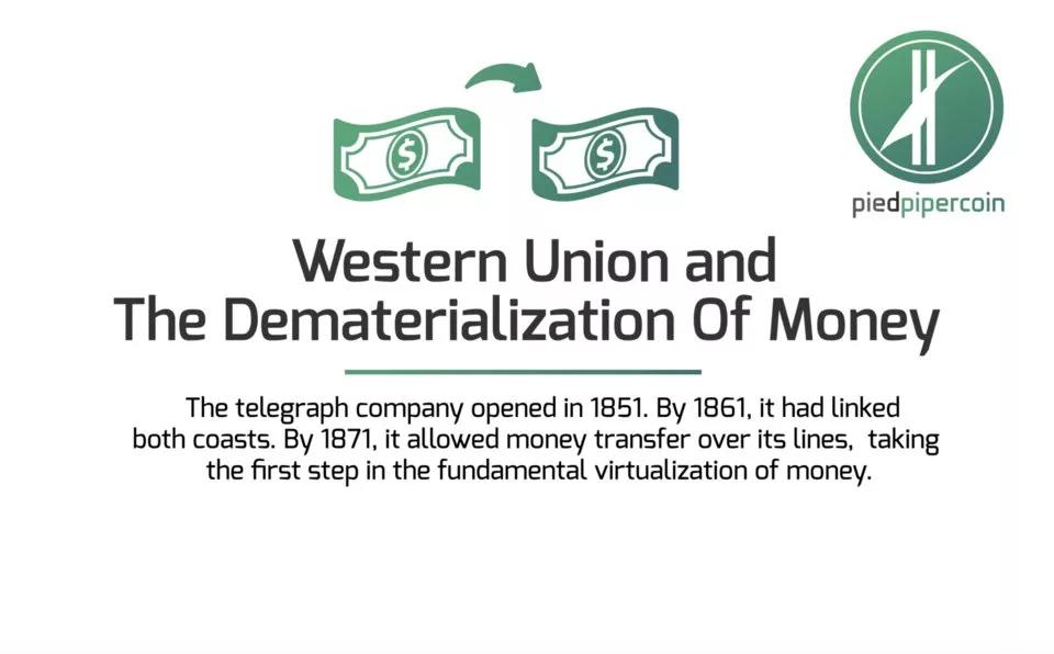 西联汇款和货币的去中心化:创建于 1851 年的西联迈出了货币虚拟化的第一步。