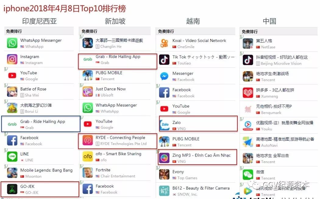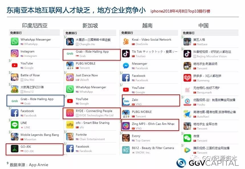 在上图中,大家可能注意到了一个APP—Grab Taxi,这款产品在当地多个国家排在Top10中,GGV投资Grab背后有三个逻辑: