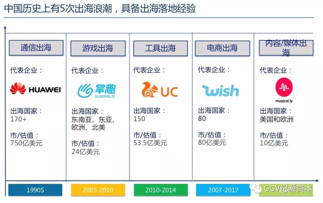 出海,对中国企业来说并不陌生,中国有悠长的出海历史,近二十多年中,前后共有五次出海浪潮。从90年代的通信出海,再到游戏,到工具型公司,再到电商,然后是内容和媒体公司。我们可以看到每次出海浪潮中,都有抓住机遇的公司,并且取得了不凡的成绩。这五波浪潮不仅为中国企业出海积淀了丰富的经验,也储备了一些国际化人才。