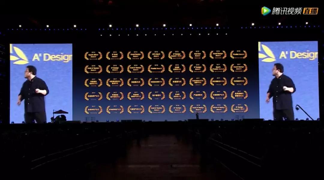 脑白金上央视广告,主要是潜移默化让广大群众,认为它是一款靠谱的保健商品。同样的,坚果 R1 到底有多高颜值,大家是不知道的。老罗为了证明它的高颜值,把近期拿的国际大奖全部搬出来了。