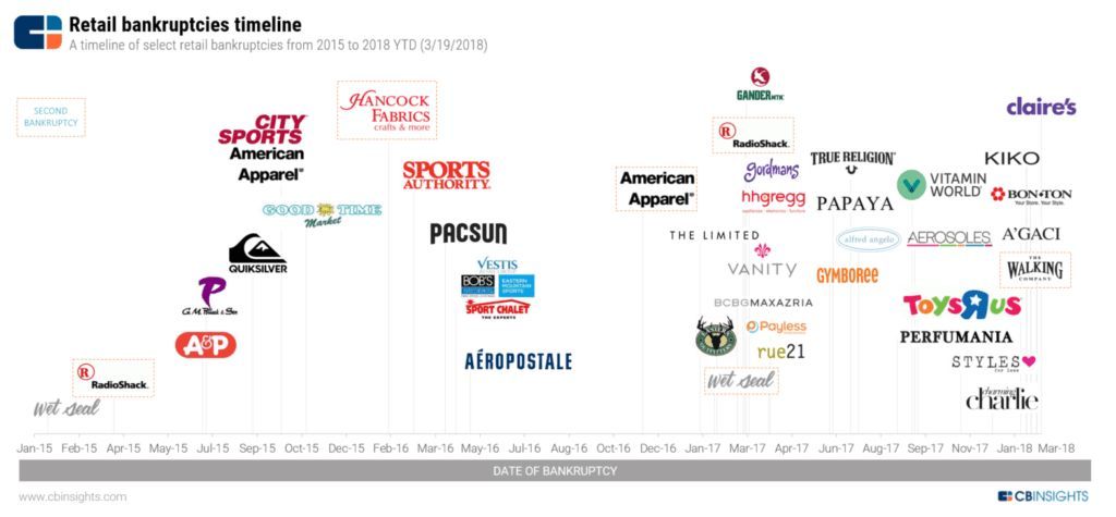 在激烈的竞争下,美国零售界的许多商店纷纷倒闭,仅2017年一年,就有21家连锁企业申请了破产,其中包括像RadiosShack, Toys R'Us和Aerosoles这种传统高利润企业。 于此同时,像梅西百货和Sears等也宣布将要关闭多达几百家的商店。在这样的时代背景下,公司战略的何去何从关系到了未来命运的成亡兴衰。