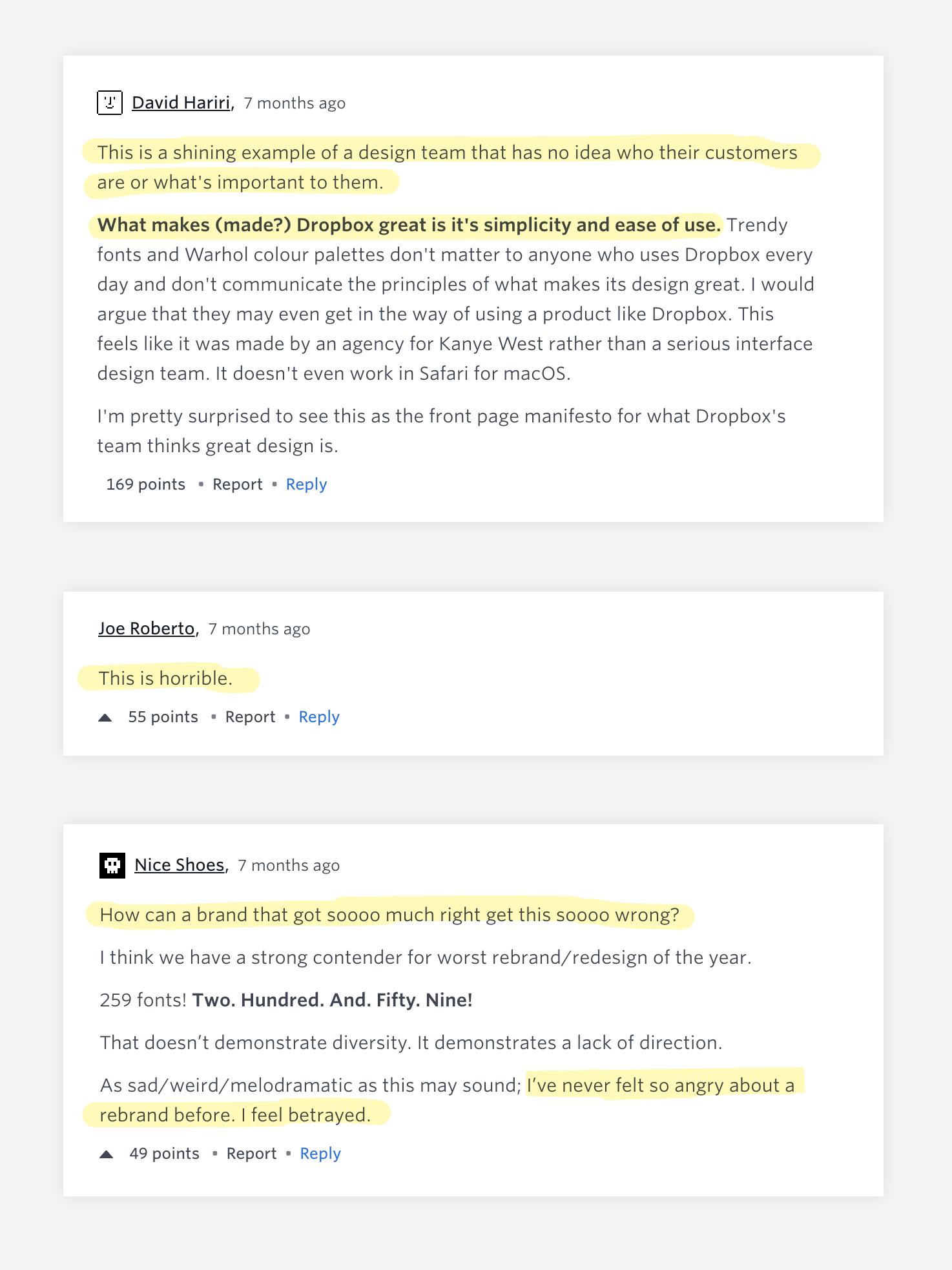 Dropbox之所以成为了Dropbox,主要在于它的简单易用。至于那些新潮的字体和沃霍尔式的色彩对任何使用Dropbox的人来说都不重要,毕竟这设计也不是因此而伟大的。我认为他们的举动可能会妨碍Dropbox产品的使用。它给人的感觉不像是一个严肃的界面设计团队应有的手笔。另外,它甚至不能在macOS的Safari浏览器中工作。