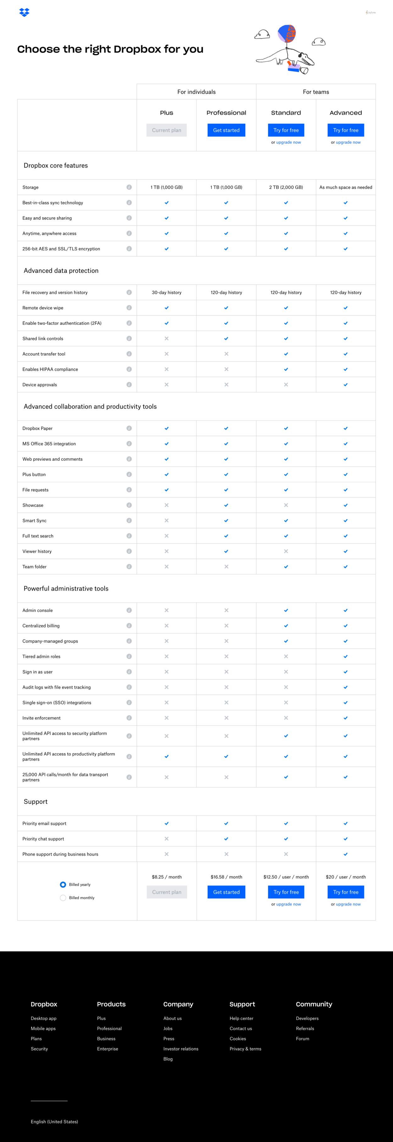 本周,来自Dropbox的Arlen McCluskey分享了新的定价页面,并从在分享后写下了一些有趣的见解,以帮助我们了解从去年到今年前前后后到底是怎么一回事: